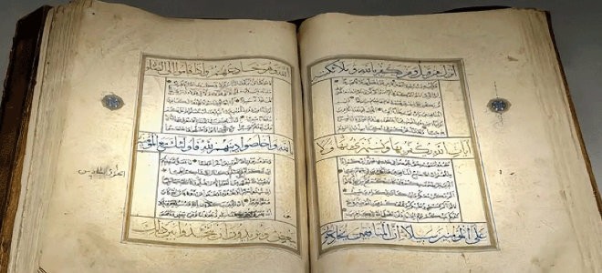 عرض مصحف شريف مزخرف من القرن الثالث عشر الهجري في متحف القرآن الكريم بمكة المكرمة