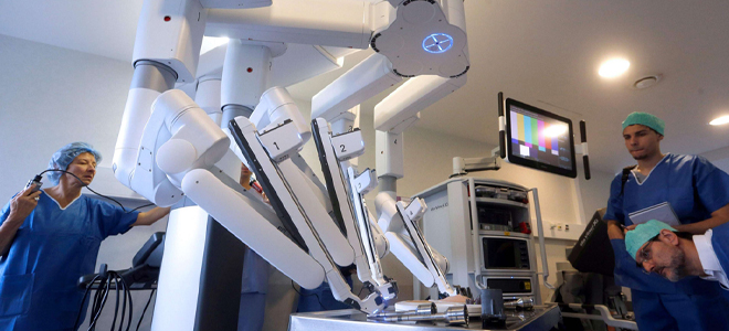 الروبوتات هي أكثر الآلات إثارة للخيال في عالم الذكاء الاصطناعي، وعلى الرغم من أن الحديث عن إجراء الروبوتات للجراحة قد يبدو سابقا لأوانه باعتبار أن ذلك يتحقق في المستقبل البعيد، إلا أن الخيال أصبح حقيقة واقعة، ففي عام 2017 اجتاز روبوت صيني امتحان مزاولة المهنة في البلاد باستخدام قدرات الذكاء الاصطناعي فقط. وفي شهر فبراير الماضي، استطاع الروبوت الجراحي فيرسيوس -الذي صنعته شركة التكنولوجيا الطبية البريطانية “سي.مي.أر سيرجيكال”، والمجهز بعدة أذرع يمكنها مساعدة الجراحين في غرف العمليات- أن يُجري أولى عملياته الجراحية الدقيقة في تخصص جراحات القولون والمستقيم.