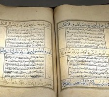 عرض مصحف شريف مزخرف من القرن الثالث عشر الهجري في متحف القرآن الكريم بمكة المكرمة